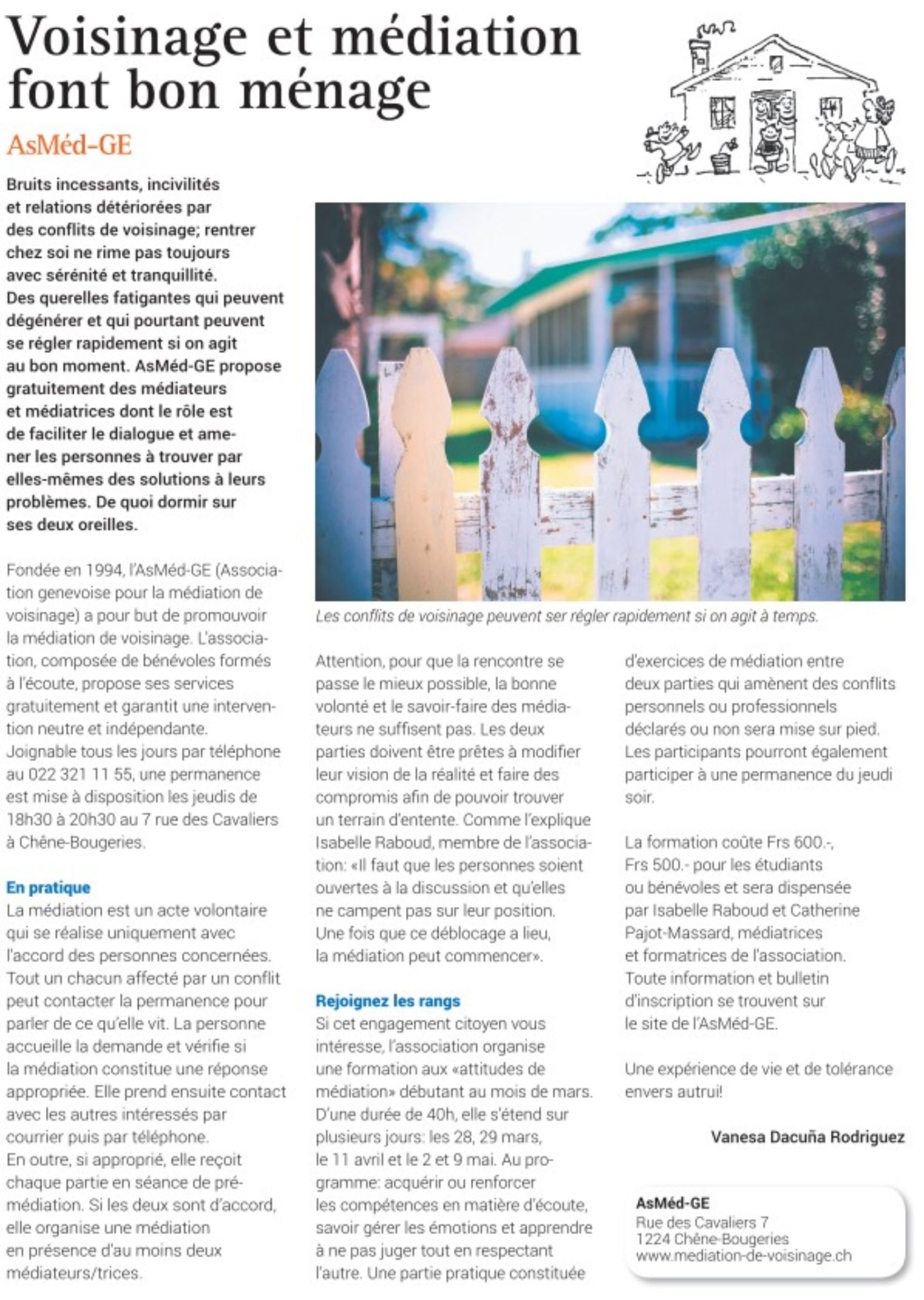 Article sur l’AsMéd-GE paru dans « Nouvelles » de mars 2015